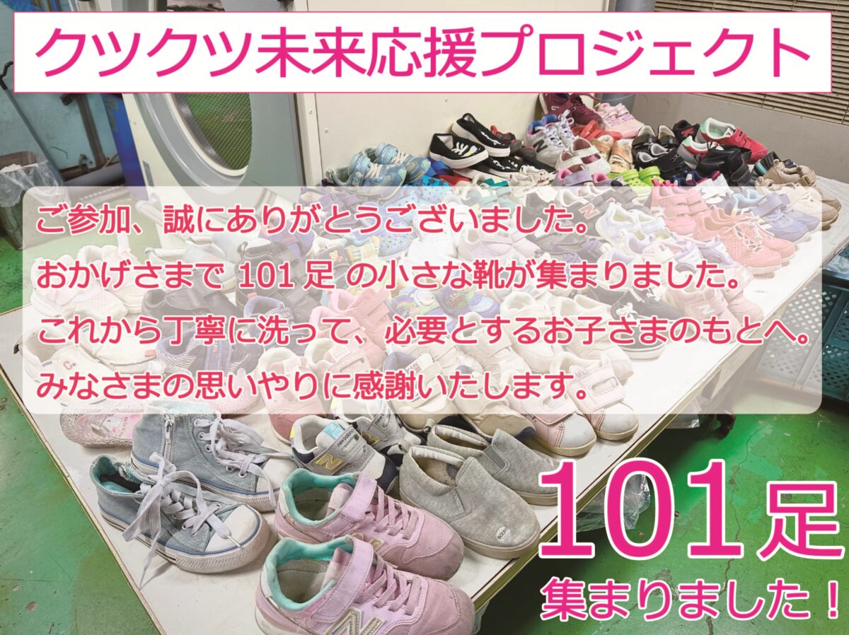 当店、クリーニングハラダでも、101足の子ども靴が集まりました。